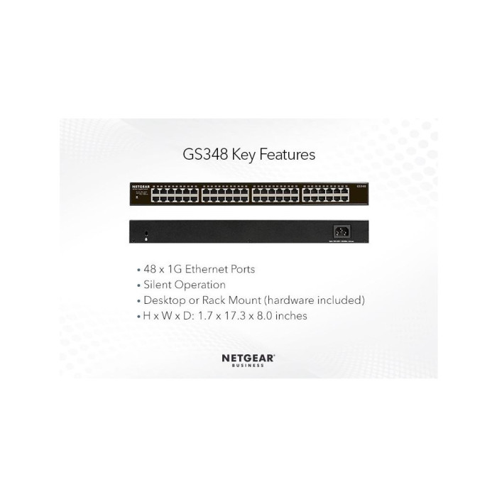 Крім усього, технологія plug-and-play усуває складне налаштування, дозволяючи вам швидко розпочати роботу і не витрачати цінний час на конфігурацію пристрою. Netgear GS348-100EUS створений для неймовірно високої здатності обробки даних, якості та надійності, що задовольнить навіть найвибагливіших користувачів.