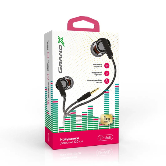 Окрім технічних переваг, варто відзначити їх стильний дизайн в кольорі Black, який підходить до будь-якого стилю та є ідеальним вибором для тих, хто цінує класику та універсальність. Grand-X EP-66B Black - це бездоганний баланс між якістю, комфортом та доступністю, що робить їх неперевершеним вибором для музичних ентузіастів і всіх, хто шукає надійне аудіообладнання для повсякденного користування.