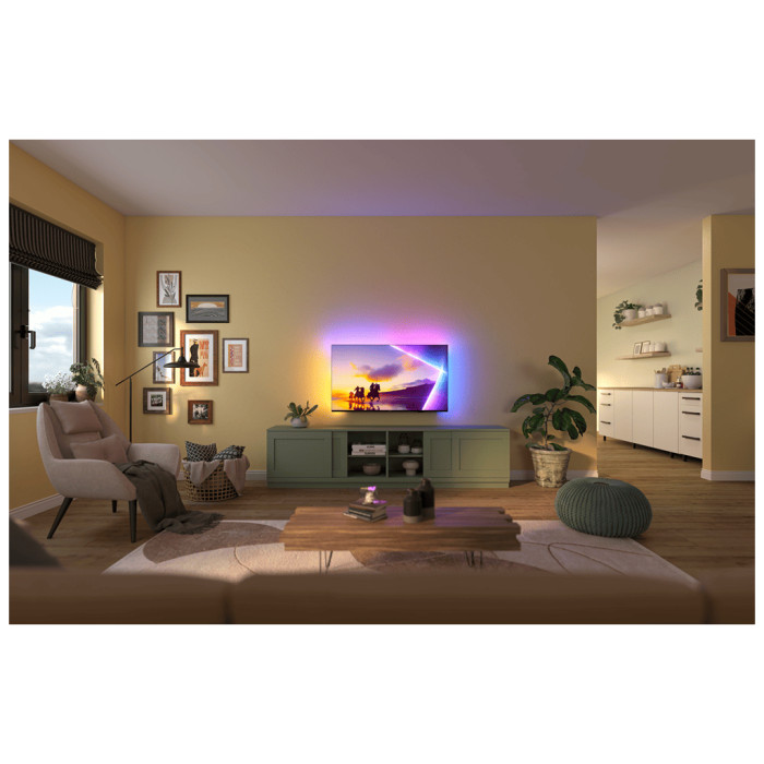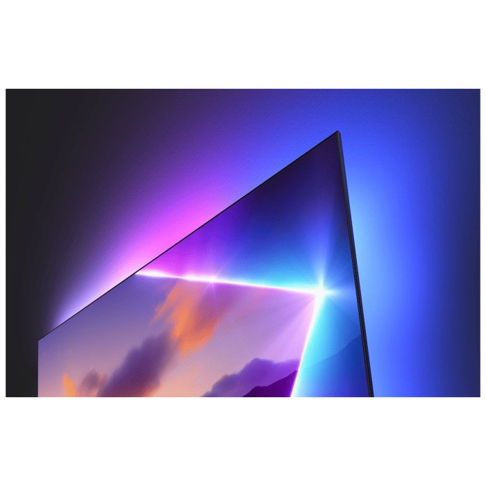Особливістю моделі є інтегрована система Ambilight, яка освітлює стіни вашої кімнати, в такт зображенню на екрані, створюючи атмосферу глибокого занурення та додаючи ще більше емоцій під час перегляду улюблених програм та фільмів. Цей ефектний візуальний супровід перетворює кожен вечір на щось особливе.