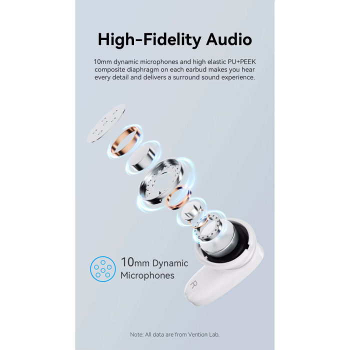 VENTION Elf Earbuds E01 мають стандарт захисту IPX4, що робить їх невід’ємними спортивними партнерами. Вони стійкі до пилу і вологи, забезпечуючи ваш комфорт і впевненість у їх надійності під час тренувань або під дощем.