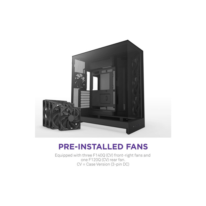NZXT H9 Flow оснащено трьома високоякісними вентиляторами 120 мм для відмінного охолодження, а пиловий фільтр запобігає осіданню пилу, забезпечуючи чистоту всередині. Для справжніх ентузіастів є можливість встановлення систем рідинного охолодження, що стане в пригоді для любителів розгону та екстремальних умов.