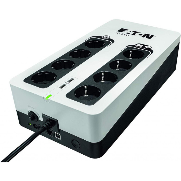 Eaton 3S 850VA (3S850D) має вісім Euro-розеток (Schuko), що дозволяє підключати кілька пристроїв одночасно, роблячи його ідеальним рішенням для офісів або домашніх умов. Крім цього, інтерфейс USB дозволяє легко підключати пристрій до комп'ютера для моніторингу стану безперебійного живлення за допомогою спеціалізованих програм.