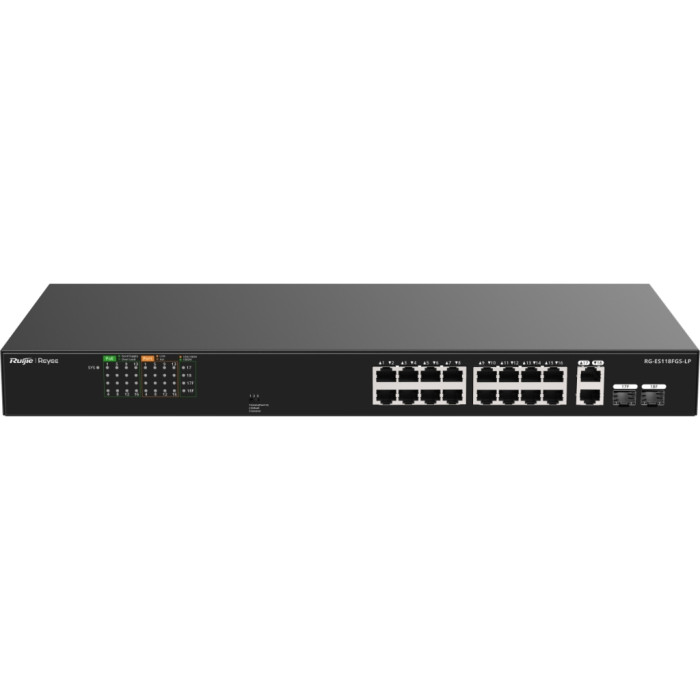 Потужність PoE 120 Вт робить RG-ES118FGS-LP універсальним рішенням для сучасних технологічних завдань, а енергозберігаючі функції підвищують його економічну ефективність, зменшуючи витрати на електроенергію. Це забезпечує надійність та довговічність роботи, а також підтримку екологічних стандартів.
