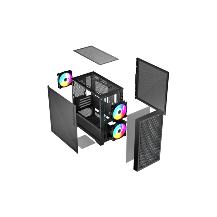 Чотири слоти розширення надають можливості для каскадного збільшення функціональності без виходу за межі компактного формату. Наявність двох встановлених 120 мм вентиляторів сприяє ефективному охолодженню системи під час інтенсивного використання. Для користувачів, які прагнуть максимізації продуктивності, передбачено можливість встановлення систем рідинного охолодження.