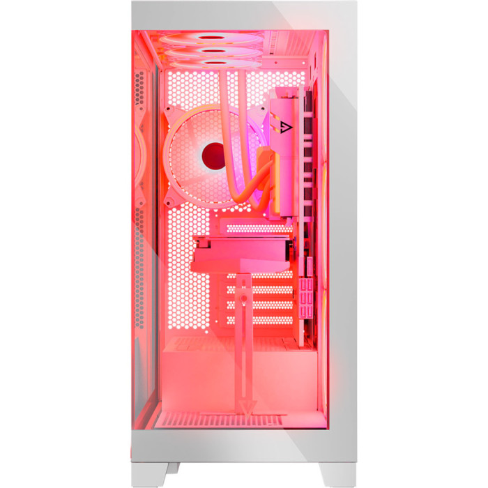 Геймерські, Miditower, ATX, Слотів розширення - 7, Вентилятори - 4 х 140 мм, Додатково - Back 1x14 см, Side 3x14 см, Top 3x12 or 2х14 см, GPU - 430 мм, CPU - 183 мм, PSU - 186 мм, кулери з підсвічуванням, 505 х 461 х 235 мм, 11.6 кг, білий