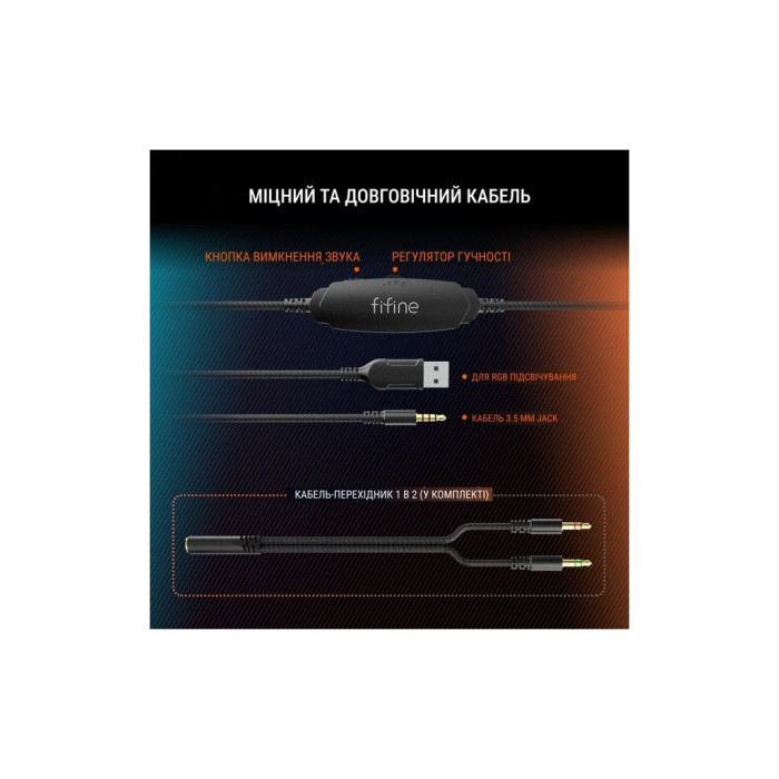 Для більшої універсальності Fifine H3 пропонує двійкове підключення за допомогою USB Type-A та Jack 3.5 мм, що робить цю гарнітуру сумісною з різноманітними пристроями: консолями, ноутбуками, комп'ютерами, а також смартфонами. Ви зможете без проблем підключатись до платформ, таких як Nintendo Switch, XBOX, геймпади PS4 / PS5 та інші. Довжина кабелю 2 метри дає вам свободу рухів, не обмежуючи вас під час гри.