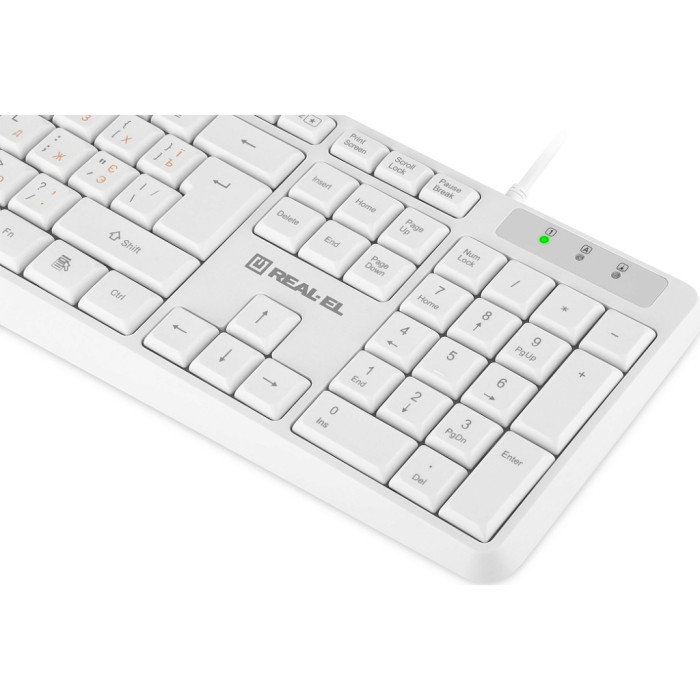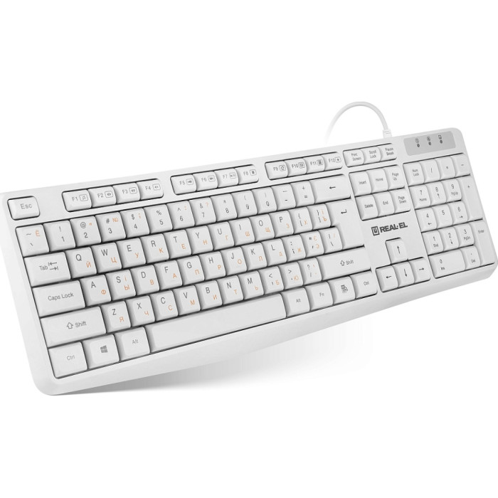 Клавіатура REAL-EL RK-513 USB White (EL123100047) — це вірне рішення для тих, хто прагне гармонії стилю та функціональності в щоденному використанні комп'ютера. Витончений білий дизайн додає елегантності будь-якому робочому простору, роблячи цей аксесуар не лише практичним, а й стильним.