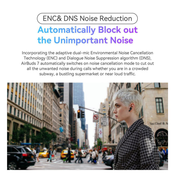 Зручність цих навушників доповнює вбудований у корпус мікрофон, який дозволяє використовувати їх як гарнітуру для розмов по телефону. Інтелектуальні технології ENC & DNS знижують рівень фонового шуму, що дозволяє досягти високої якості звуку під час дзвінків навіть у шумних умовах. Сенсорне управління навушниками полегшує перемикання треків, регулювання гучності та відповіді на дзвінки без необхідності діставати смартфон.
