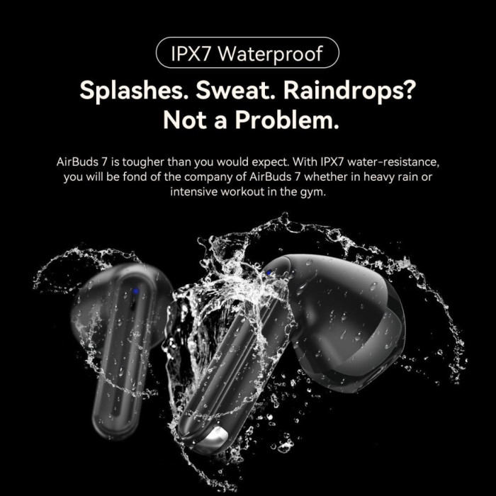 Підвищена стійкість до пилу та вологи, що відповідає стандарту IPX7, робить ці навушники надійним супутником у будь-яку погоду. Вони витримують дощ та вологу, що дозволяє займатися спортом і не турбуватися про випадкове пошкодження.