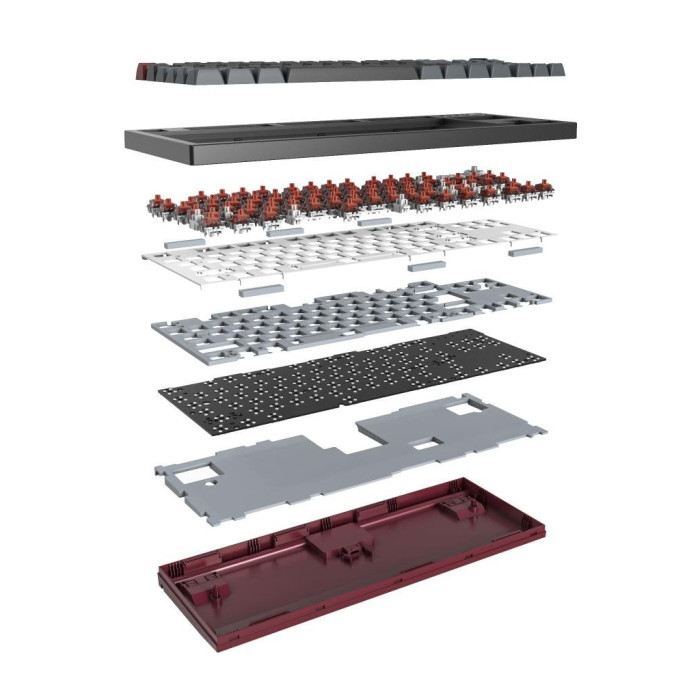 Окрім того, клавіатура виготовлена з високоякісного матеріалу PBT, що захищає клавіші від стирання та зберігає їх оригінальний вигляд. Преміум-профіль MDA надає клавішам комфортного вигляду, а 5-сторонній сублімаційний друк забезпечує їхню довговічність. Підтримка повної гарячої заміни клавіш дозволяє користувачам легко кастомізувати пристрій відповідно до власних уподобань.