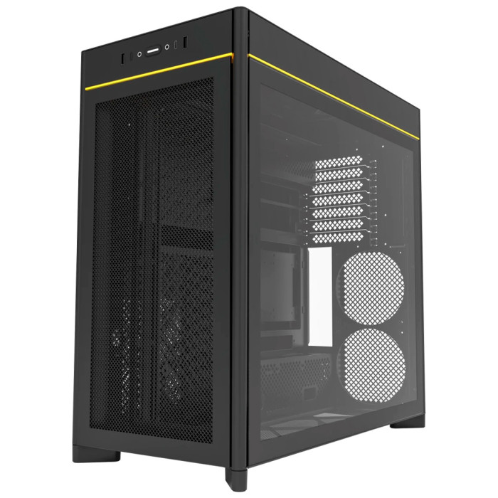 Блок живлення розташовується у верхній частині корпуса, що сприяє кращому управлінню кабелями та підтримці чистоти всередині системи. Монтажні можливості корпусу MONTECH HS01, доповнені прозорим вікном на бічній панелі та інтегрованою світлодіодною підсвіткою, роблять його особливо привабливим для тих, хто хоче продемонструвати внутрішню красу своєї збірки.