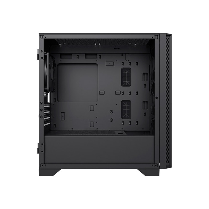 Корпус має інтуїтивно зрозумілий інтерфейс підключення. На передній панелі розміщено два порти USB 3.0, один USB 2.0 та два аудіо роз'єми, що дозволяє з легкістю підключати додаткові пристрої. Для безпеки та зручності використання, корпус оснастили бічним вікном із загартованого скла, яке легко відкривається, надаючи швидкий доступ до компонентів. Скло також надає корпусу естетичного вигляду, дозволяючи демонструвати внутрішню компоновку системи.
