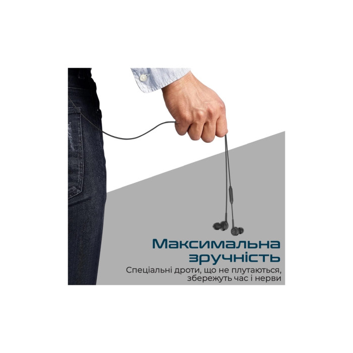 Навушники також оснащені вбудованим мікрофоном, який розміщений на дроті. Це дозволяє вам вільно відповідати на дзвінки завдяки зручній кнопці управління, розміщеній теж на дроті. Така конструкція мікрофона гарантує, що ваші слова будуть почуті чітко і зрозуміло.