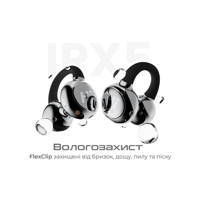 Навушники мають вологозахист за стандартом IPX5, що робить їх стійкими до бризок води, дощу, пилу та піску, забезпечуючи надійний захист в різних умовах. Однак слід уникати повного занурення у воду для збереження їхньої працездатності.