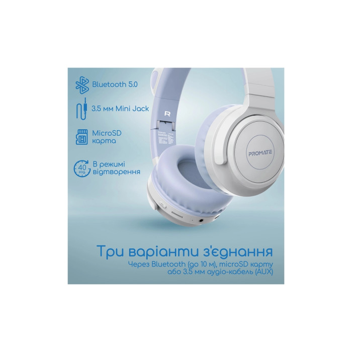 Чудово сумісні з усіма пристроями, які підтримують Bluetooth, навушники Promate Panda Lilac обирають як надійного партнера для аудіо-розваг, підкреслюючи ваш стиль та індивідуальність. Ця модель стане яскравим та функціональним доповненням, що радує дітей та зберігає спокій батьків за якість та безпеку звучання.