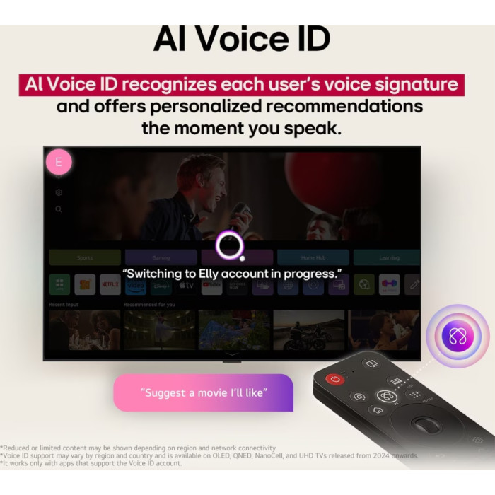 Звук, не менший від зображення, вражає завдяки системі AI Sound Pro та AI Acoustic Tuning. Ці технології спільно з потужністю динаміків 20 Вт створюють об'ємний, чистий звук, що наповнює приміщення. Завдяки Clear Voice Pro ви ніколи не пропустите жодної деталі діалогів, навіть у напрочуд насичених звукових середовищах.