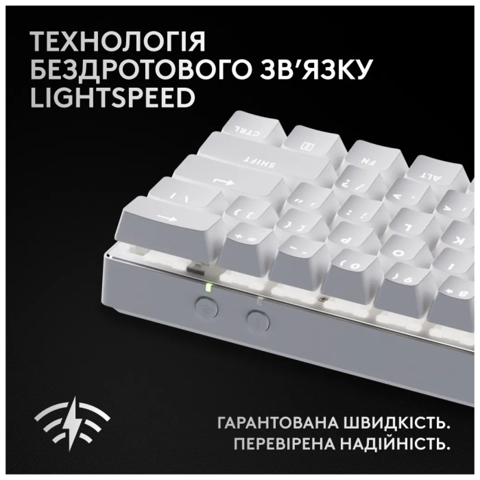 Клавіатура Logitech G Pro X 60 Lightspeed GX Tactile Wireless/Bluetooth UA White (920-011930) — це втілення мистецтва технологій ідей, створене спеціально для геймерів-професіоналів. Вона поєднує в собі стильний компактний дизайн 60% з передовими технологіями, що дозволяють підкорювати світ кіберспортивних змагань.