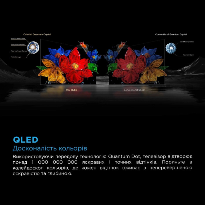 Технологія QLED втілює собою втілення точності кольоропередачі. Завдяки цьому телевізор може відтворювати ширший спектр кольорів з вражаючою насиченістю та однорідністю, що значно покращує враження від перегляду фільмів чи спортивних трансляцій. HDR підтримується в усіх популярних форматах, таких як Dolby Vision, HDR10+, що гайдає деталізацію та динаміку зображення на новий рівень.