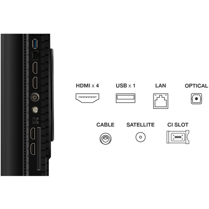 Інтелектуальні функції та можливості підключення Наявність вбудованого Wi-Fi і Bluetooth робить телевізор ідеальним вибором для покоління Smart TV. З операційною системою Google TV ви отримуєте доступ до численних додатків та сервісів, тоді як можливості підключення через 4 x HDMI, RJ-45, USB та інші інтерфейси дозволяють інтегрувати телевізор у вашу домашню розважальну екосистему.