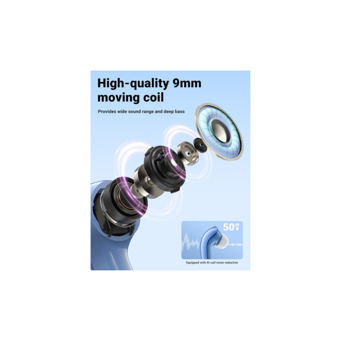Одна з найбільш вражаючих характеристик Acefast T9 – це їхнє бездротове підключення через Bluetooth 5.3. Завдяки цій технології ви отримуєте стабільний і надійний зв’язок з вашим пристроєм на відстані до 10 метрів. Тепер ви можете залишити свій пристрій в іншій кімнаті і продовжувати займатися своїми справами, не втрачаючи жодного ритму. Крім того, активне шумозаглушення з технологією SVE AI дозволяє вам насолоджуватися чітким звуком навіть у найшумніших місцях, будь то метро, кав'ярня або переповнений офіс.