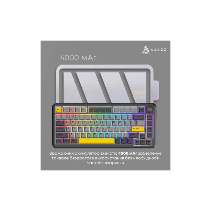 Клавіатура Ajazz AK820 MAX PLUS Daydream Switch RGB Wireless/Bluetooth/USB Black (AK820MAX-DD-BGY) - це вишукана механічна клавіатура, яка створена для геймерів та програмістів, які цінують продуктивність і стиль. Вона поєднує елегантний дизайн із високотехнологічними характеристиками, що роблять її незамінною частиною вашої технічної арсеналу.