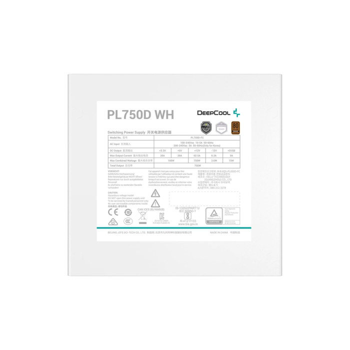 Блок живлення Deepcool 750W (PL750D WH) стоїть на чолі сучасних технологій, що поєднують надійність та ефективність. Це високопродуктивне рішення для вашого комп'ютера, яке здатне впоратися з найвимогливішими завданнями завдяки своїй потужності у 750 Вт. Розроблений відповідно до стандарту ATX, цей блок живлення бездоганно інтегрується у переважну більшість системних блоків. Чи це потужні ігри, чи вимогливі графічні та відео програми, Deepcool PL750D WH заповнює вашу систему істинною енергією.