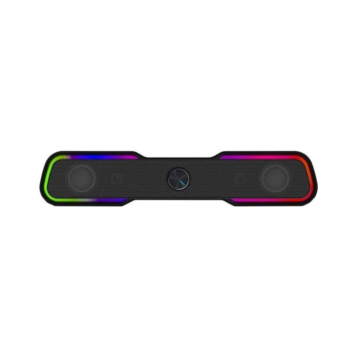 Естетика звучання доповнюється різнокольоровим RGB підсвічуванням, яке створює унікальну атмосферу і вписується в будь-яке приміщення. Ви можете розмістити саундбар під монітором або телевізором, що робить його відмінним вибором як для дому, так і для офісу. Ергономічний дизайн саундбару, виконаний з гумового та пластикового матеріалу, не лише приваблює погляд, але й забезпечує надійну фіксацію завдяки гумовим ніжкам, які запобігають ковзанню по поверхні.