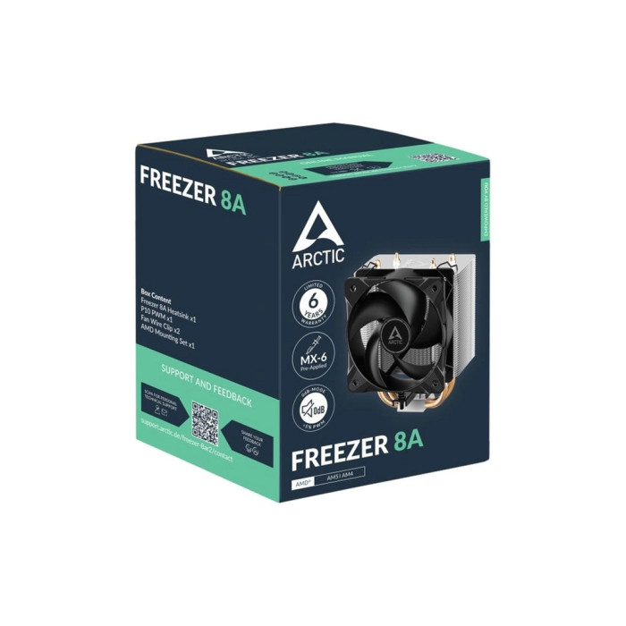 Arctic Freezer 8A постачається з попередньо нанесеною термопастою MX-6, що спрощує встановлення та забезпечує високу теплопровідність. Завдяки компактним розмірам і вазі 415 г, він простий у монтажі та не створює навантаження на материнську плату.