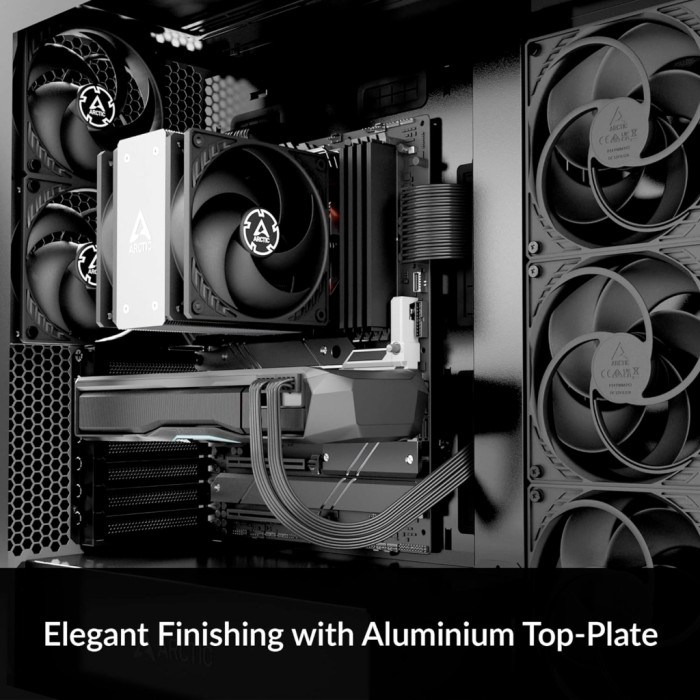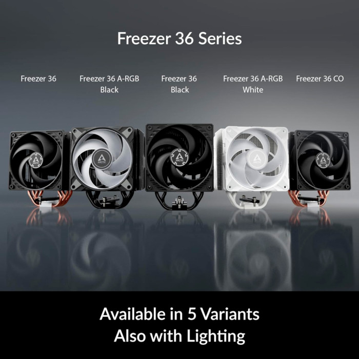 Висококласне оздоблення з алюмінієвою верхньою пластиною: завдяки двотактній конфігурації Freezer 36 CO вражає не тільки ефективністю охолодження, а й своїм дизайном. Припаяні кінці теплових трубок приховані пригвинченою алюмінієвою кришкою, що дає змогу легко вписатися в будь-яку конфігурацію ПК і підкреслити як продуктивність, так і зовнішній вигляд.Наступник з оптимізованою продуктивністю: внутрішні тести засвідчили, що Freezer 36 CO не тільки пропонує значні поліпшення, як порівняти зі своїми попередниками, Freezer 35 і досі популярною Freezer 34 eSports DUO, а й як порівняти з кулерами конкурентів. Спрощена збірка і підвищена продуктивність роблять його придатним як для новачків, так і для можливості оновлення. Випробування проводилися в нашій лабораторії в Гонконзі; всі кулери працювали на повній швидкості.Перспективна сумісність: Freezer 36 CO сумісний із сокетами Intel і AMD. У майбутньому Intel випустить нові процесори Arrow Lake на сокеті LGA1851. Клієнтам ARCTIC не потрібно турбуватися про те, що для нових процесорів також будуть потрібні нові кулери. Ми гарантуємо повну сумісність. Усі Freezer 36 можна використовувати з новим роз'ємом LGA1851 від Intel без обмежень.Покращене кріплення вентилятора: завдяки інноваційній системі кріплення вентилятори кабіни легко кріпляться до радіатора за допомогою системи замків. Цей метод монтажу усуває необхідність у затискачах для вентиляторів, що спрощує встановлення кулера або заміну вентиляторів, навіть якщо кулер уже встановлено. Таким чином, Freezer 36 CO сумісний з більшістю 120-мм вентиляторів.LGA1851|Контактна рамка LGA1700: незалежний механізм завантаження Intel (ILM) деформує процесор, вдавлюючи його в сокет у двох точках силою понад 40 кг. Це спричиняє тиск у друкованій платі, кристалі та шарі припою між кристалом і IHS (інтегрованим розподільником тепла). За високого теплового навантаження це може призвести до довгострокових проблем. Запатентована монтажна рама від ARCTIC не деформує процесор, значно знижує механічне навантаження на процесор, швидко і легко встановлюється і дає змогу пригвинчувати кулер до задньої панелі процесора. У результаті механічне навантаження на материнську плату і процесор зводиться до мінімуму, ефективність охолодження залишається стабільною, а встановлення виконується швидко і нескладно.Розроблено для безперервної роботи: обидва вентилятори Freezer 36 CO оснащені двома японськими шарикопідшипниками. Це робить ці вентилятори особливо довговічними та стійкими до зовнішніх впливів, як-от тепло, пил і вібрація. Отже, цей варіант є ідеальним вибором для цілодобової роботи.Оптимізований радіатор: ребра радіатора відкриті збоку і дають змогу витяжному вентилятору витягати додаткове холодне повітря з корпусу ПК через радіатор. Така конструкція з бічним потоком забезпечує ще ефективнішу вентиляцію.Якість, на яку можна покластися: щоб забезпечити довговічність нашої продукції, ми проводимо тривалі випробування в різних, іноді дуже несприятливих умовах. Таким чином, ми дізнаємося, як ми можемо постійно покращувати нашу продукцію для наших клієнтів. Крім того, відмінні результати довгострокових випробувань дають нам упевненість у тому, що наша продукція вирізняється не лише видатною якістю, а й довговічністю.