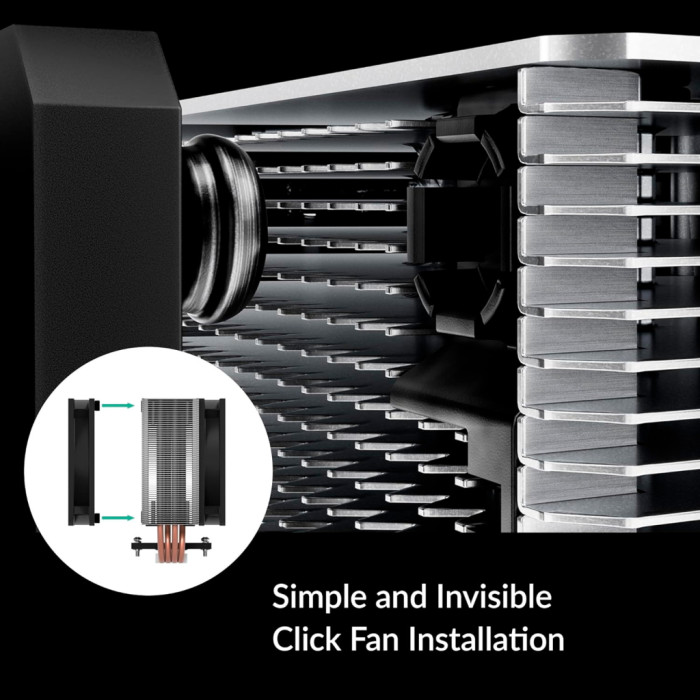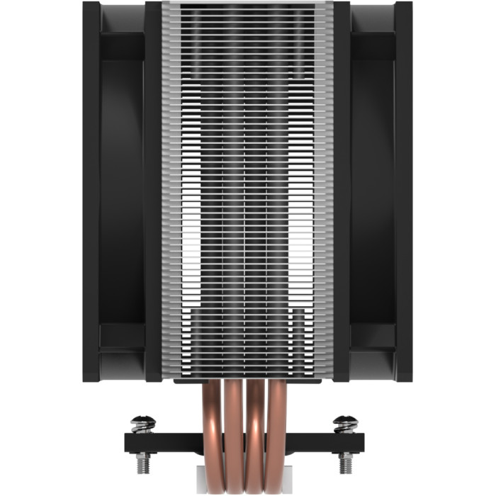 Для процесорів - INTEL, AMD, сокет - AM4, AM5, 1700, 1851, матеріал радіатора - алюміній + мідь, діаметр вентиляторів - 120 мм, Максимальна частота обертів - 1800 об/хв, Тип підшипників - гідродинамічний (FDB Bearing), рівень шуму - 29.6 dB, роз'єми живлення - 4-pin PWM, Підсвічування - немає, 4 теплові трубки