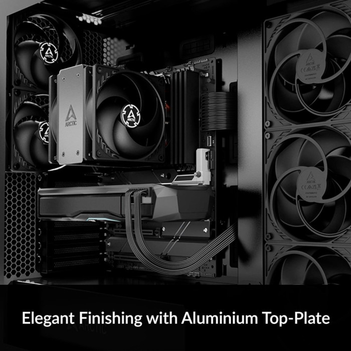 Висококласне оздоблення з алюмінієвою верхньою панеллю. Завдяки конфігурації push-pull Freezer 36 вражає не тільки ефективністю охолодження, а й дизайном. Паяні кінці теплових трубок приховані алюмінієвою кришкою, що загвинчується, що дає йому змогу органічно вписатися в будь-яку конфігурацію ПК і підкреслити як продуктивність, так і зовнішній вигляд.
