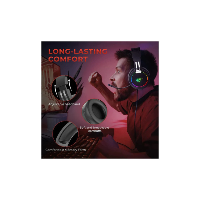 Однією з ключових переваг навушників Havit HV-H2010d є їх закрите акустичне оформлення, що дозволяє повністю зосередитися на грі, не відволікаючись на зовнішні шуми. Амбушури з шкірозамінника та м'якою піною забезпечують відмінну звукоізоляцію і максимальний комфорт, навіть під час тривалих ігрових сесій. Регулюване наголов'я дозволяє точно підібрати розмір для безболісного носіння, забезпечуючи зручну посадку без зайвого тиску на голову.