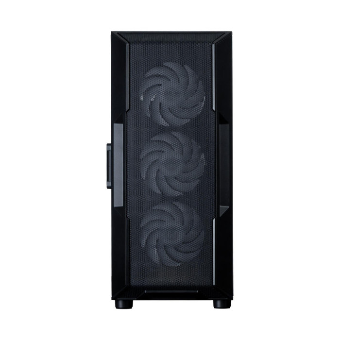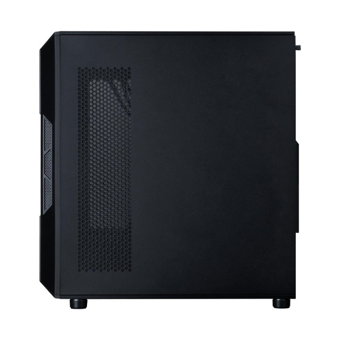 Бічна панель, зроблена з загартованого скла товщиною 3 мм, забезпечує швидкий доступ до компонентів завдяки кріпленню на петлях. Це дозволяє легко модифікувати або очищати системний блок. Оригінальний дизайн, разом з чорним кольоровим рішенням та ARGB підсвічуванням, створюють стильний вигляд, що доповнить будь-який інтер`єр.