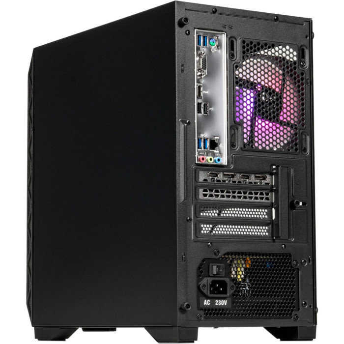 Виготовлений у мінімалістичному чорному кольорі, корпус відзначається елегантністю та витонченістю. Особливу увагу привертає бічна панель із загартованого скла, що не лише надає можливість милуватись харизматичним внутрішнім оздобленням з підсвічуванням, але й одночасно додає вашій системі візуальної привабливості. Яскраве RGB-підсвічування кулерів і панелей додає стилю та динаміки, підкреслюючи індивідуальний характер вашої ігрової системи.