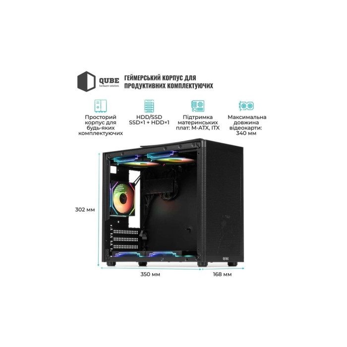 Основною перевагою Qube BRING_GBNU3 є його можливість підтримувати Micro-ATX та Mini-ITX материнські плати, що робить його універсальним рішенням для різноманітних конфігурацій. Корпус пропонує один внутрішній відсік 3.5" та один внутрішній відсік 2.5", що ідеально підходять для розміщення твердотільних і жорстких дисків. Це чудове рішення для тих, хто прагне створити збалансовану систему з невеликою кількістю компонентів, але високою продуктивністю.