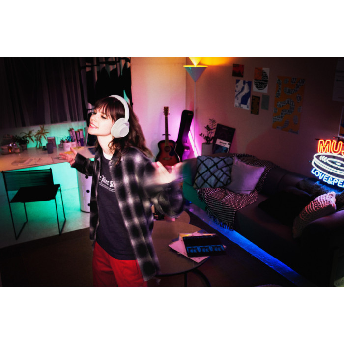 Завдяки комбінованому підключенню за допомогою Bluetooth 5.2 та Jack 3.5 мм ви з легкістю з'єднаєтеся з будь-яким пристроєм: телефонуйте друзям, переглядайте улюблені шоу на телевізорі або працюйте на ноутбуці без зайвих труднощів. Навушники оснащені активним шумозаглушенням, що за допомогою двох мікрофонів у кожному навушнику та подвійного датчика шуму ефективно блокує зайві звуки навколишнього світу, дозволяючи вам насолоджуватись чистим та потужним звучанням.