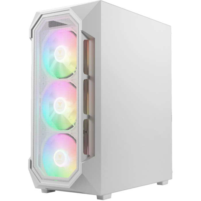 Геймерські, Miditower, ATX, Micro - ATX, Mini - ITX, Слотів розширення - 7, Вентилятори - 4 х 120 мм, Додатково - Top 2x12 см, GPU - до 340 мм, CPU - 160 мм, PSU - 160 мм, кулери з підсвічуванням, на передній панелі, на задній панелі, 195 х 450 х 395 мм, 4.9 кг, білий