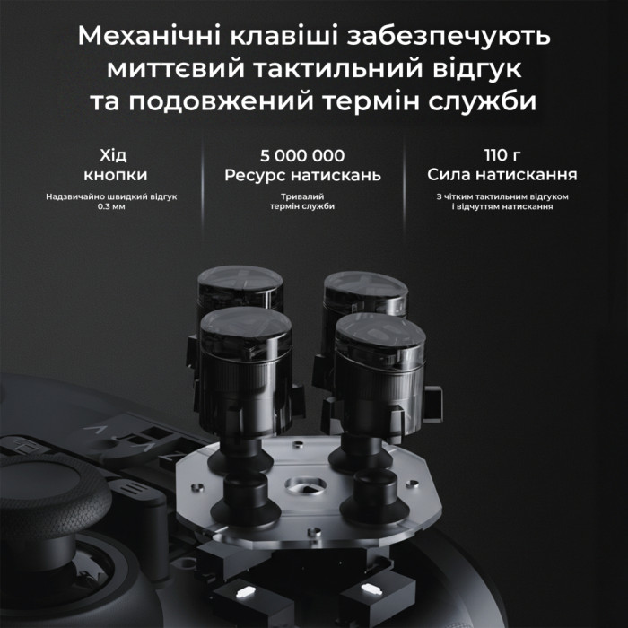 Цей контролер поєднує сучасний дизайн, точне керування та гнучкі режими підключення, що робить його чудовим вибором як для тривалих ігрових сесій на ПК, так і для мобільних пристроїв чи Nintendo Switch.
