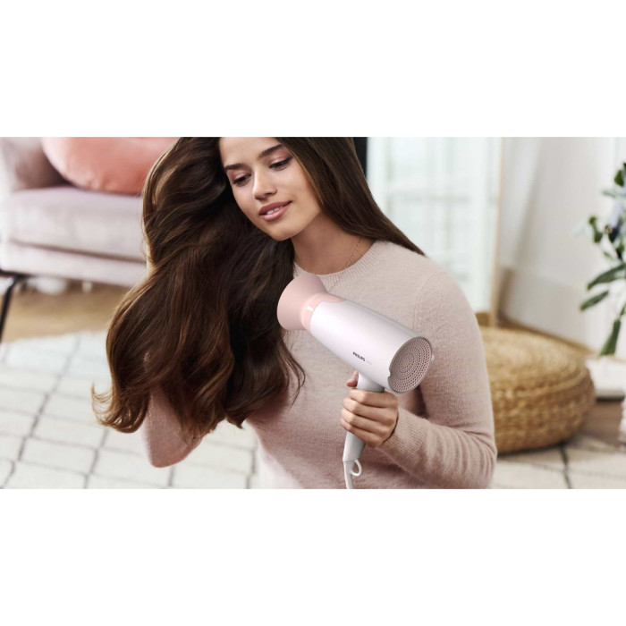 Тип - звичайний, побутовий, 1600 Вт, насадка thermoprotect, постійний струм (DC Motor), довжина шнура - 1.8 м, Колір - білий, рожевий