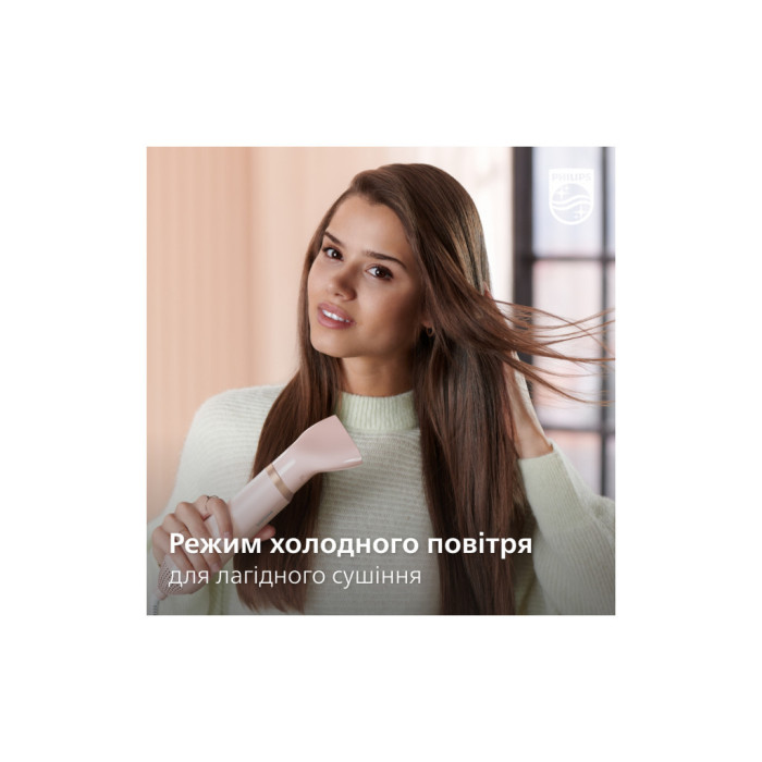 Режим дбайливої укладки для більшого захисту волоссяНалаштування "Догляд" забезпечує оптимальну температуру сушіння і захищає від пересушування. Волосся сушиться швидко з тим самим потужним потоком повітря, але за сталої помірної температури.