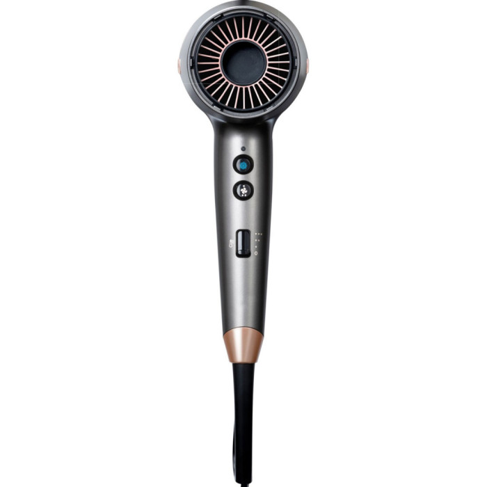 Тип - звичайний, побутовий, 2000 Вт, дифузор, концентратор, постійний струм (DC Motor), Тип іонізації - з генератором іонів, довжина шнура - 1.8 м, Колір - сірий, рожевий