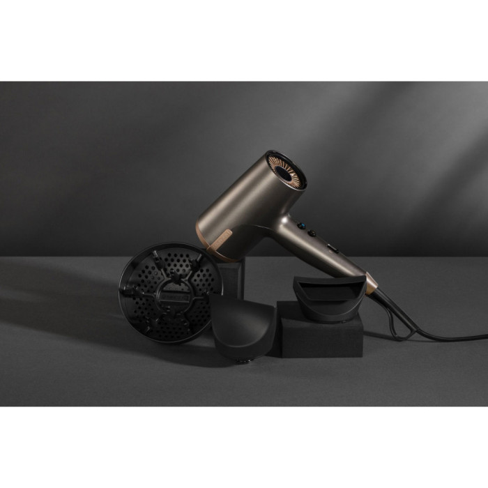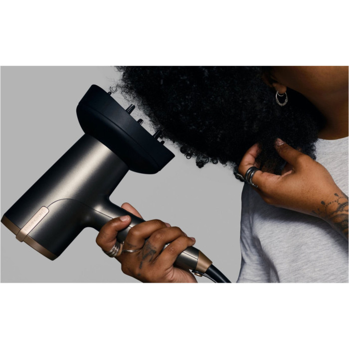 Комплектація включає в себе кілька насадок, які розширюють ваші можливості у створенні різних стилів. Концентратор дозволяє спрямовувати повітря точково, допомагаючи створити ідеально рівне та гладке укладання. Спеціальний дифузор допоможе дбайливо і швидко висушити волосся, підсилюючи природні кучері та хвилі, що робить цей фен ідеальним для власників кучерявого волосся. Приємною особливістю є й функція подачі холодного повітря, що фіксує укладку, даруючи їй тривалий ефект навіть у вологих умовах.
