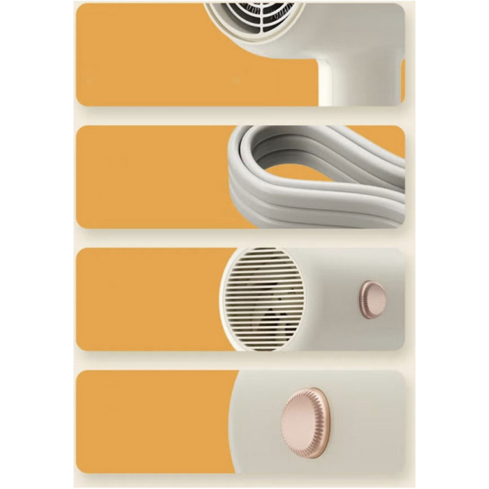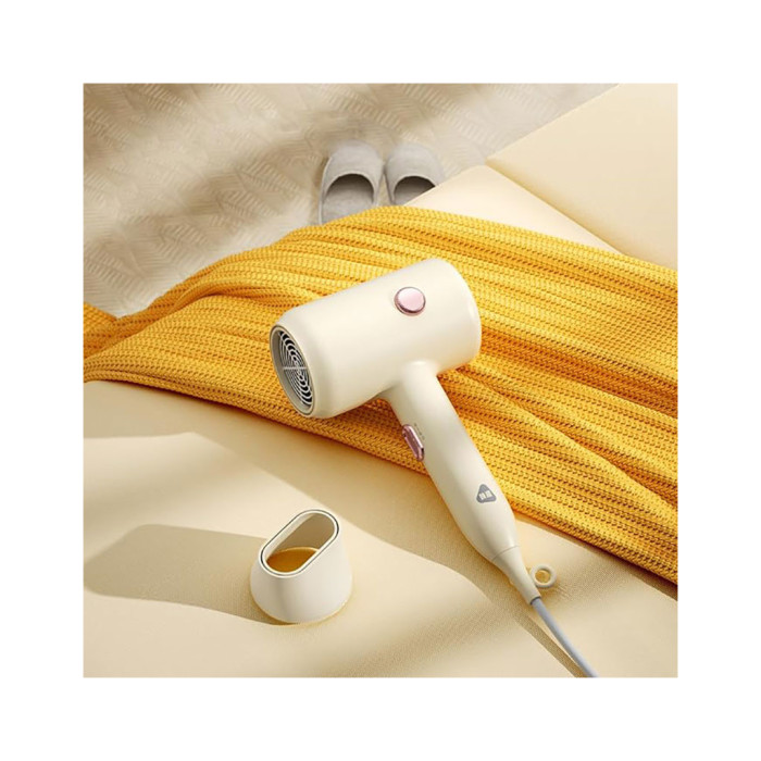 Фен Xiaomi AIR 7 має приємний дизайн у білому кольорі, що виглядає стильно та естетично. Множинна комбінація придушення шуму, натхненна конструкцією пропелера літака із шістьма лопатями, робить його використання комфортним навіть у тихий час доби.