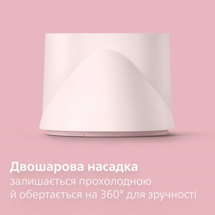 Фен Philips BHD321/50 з DC мотором працює тихо та енергоефективно, що сприяє зниженню шуму під час роботи і підвищує довговічність пристрою. Завдяки компактній вазі 0.35 кг та шнуру довжиною 1.6 метра, ви можете вільно переміщуватися під час укладання, без відчуття втоми рук. Його стильний рожевий колір додає шарму та стане яскравим акцентом у вашій ванній кімнаті.