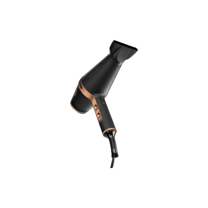 Особлива увага приділяється захисту волосся завдяки турмаліновій іонізації, що запобігає електризації та допомагає укладати локони, зберігаючи їх м’якість та здоровий блиск. У комплекті з феном надаються спеціалізовані насадки: дифузор і концентратор, що дозволяють досягнути бажаного об'єму або ідеально прямого вигляду волосся. Ці функції особливо підходять для тих, хто має кучеряве волосся, надаючи їм захист та формуючи бездоганний стиль.