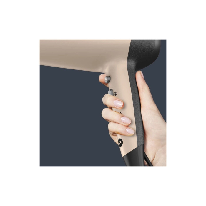 Розумні технології цього фена дозволяють вам насолоджуватися максимальним комфортом при кожному використанні. Потужність у 1900 Вт, у поєднанні з двома швидкості та трьома температурними режимами, забезпечують оптимальне сушіння для кожного типу волосся. Ви також зможете обрати між насадкою-концентратором для точного укладання та дифузором для створення об’ємних, розкішних кучерів.