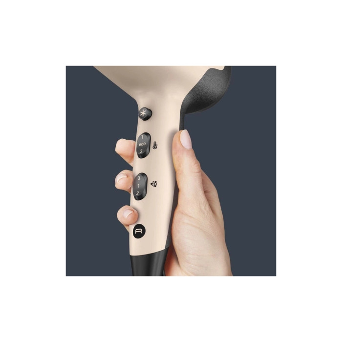 Для тих, хто цінує екологічність, еко-режим та використання відповідально виготовлених матеріалів є значним плюсом. Фен виготовлено з щонайменше 30% перероблених матеріалів, зокрема 60% переробленого пластику. Це дозволяє заощадити до 55% енергії, зберігаючи при цьому оптимальну ефективність сушіння.