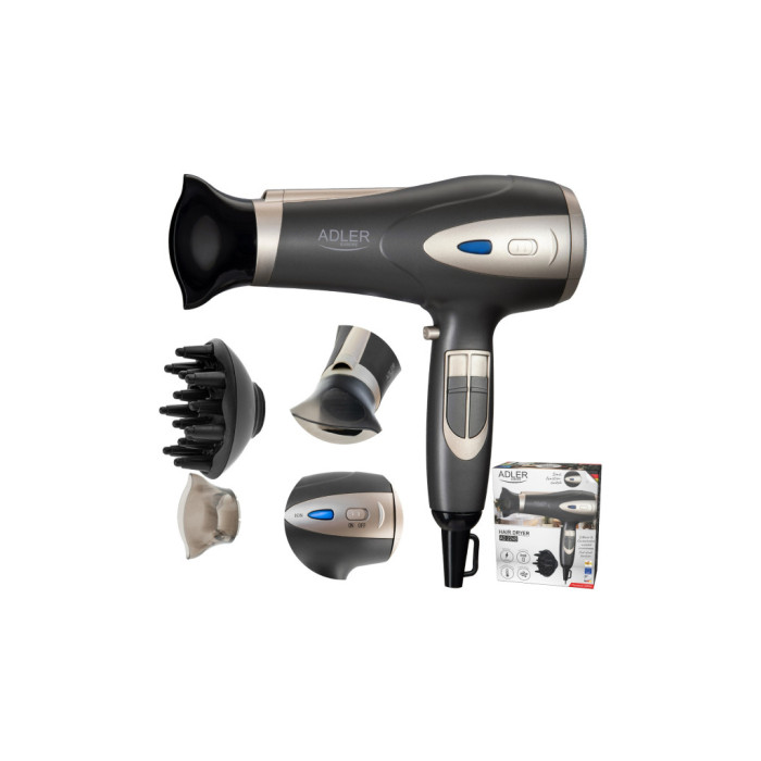 З Adler AD 2248 grey ваші волосся отримають не лише дбайливий догляд, але й захист та бездоганний вигляд, на які ви завжди можете розраховувати. Обирайте той почуття бездоганності кожен день завдяки цьому стильному та ефективному фену.