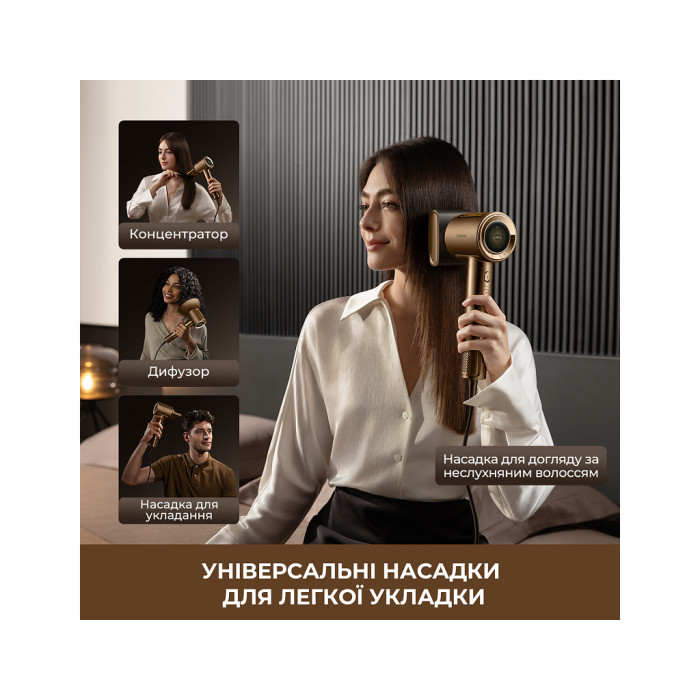 У комплекті також є вузький концентратор, який точно спрямовує повітряний потік для ще бездоганнішої укладки.