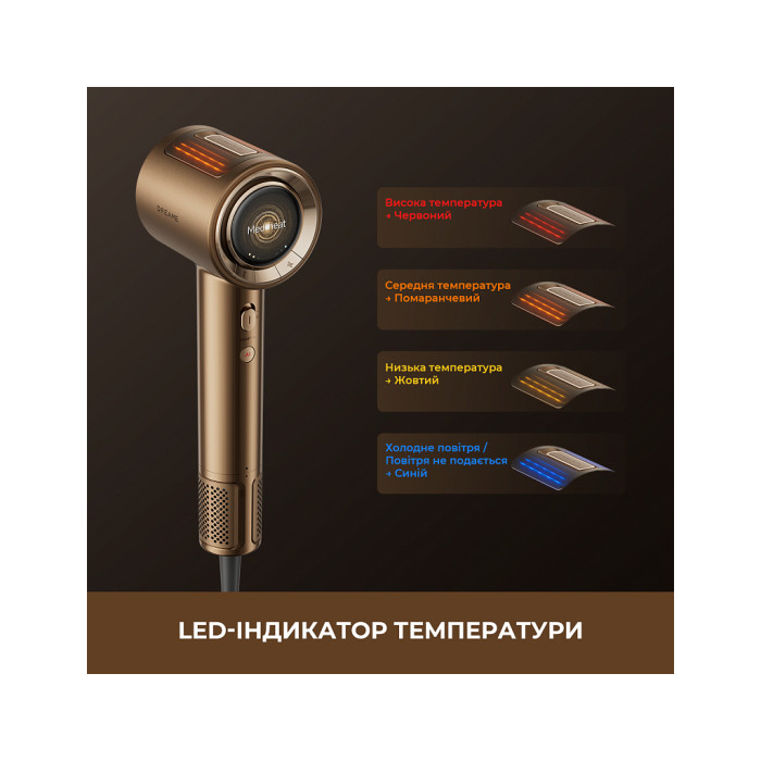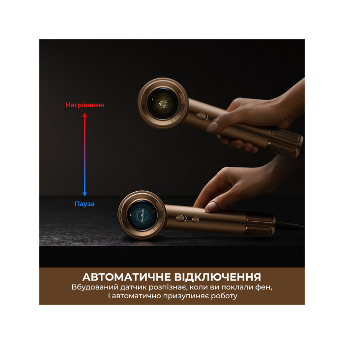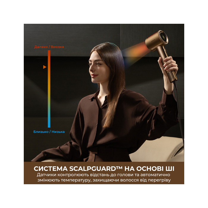 Розумний датчик NTC регулює температуру повітряного потоку, забезпечуючи ефективне сушіння, захист шкіри голови та збереження природного блиску волосся.